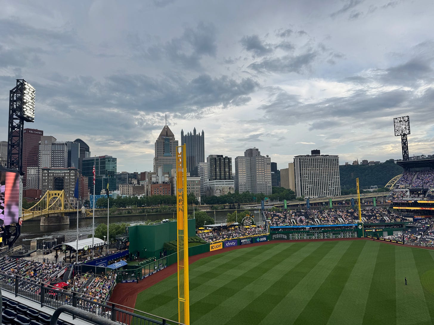 So the vibes were high all weekend. Despite the summertime humidity and the 90-minute rain delay, it was to see how Pittsburgh does ball. This was my 27th stadium visit, with St. Louis, Cincinnati, and Cleveland remaining. I can’t wait to see how the Final Flobito Ballpark Rankings shake out. Btw, ‘yinz’ is how people from Pittsburgh say ‘y’all.’ And that, my friends, is crazy.