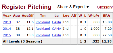 In baseball, a sub-3 ERA is considered elite. This guy hovers over TWELVE. In other words, he wasn’t even good ten years ago!