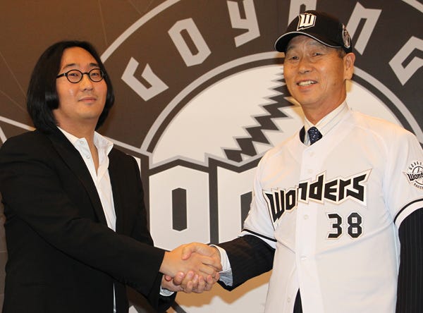 His obsession with learning the knuckleball and practice didn’t stop there. After a stint playing for a team in the United States (I mean, really, WHY haven’t I heard of this guy before??), he became a controversial figure during his stint as an executive with Korean Baseball team, the Kiwoom Heroes:
